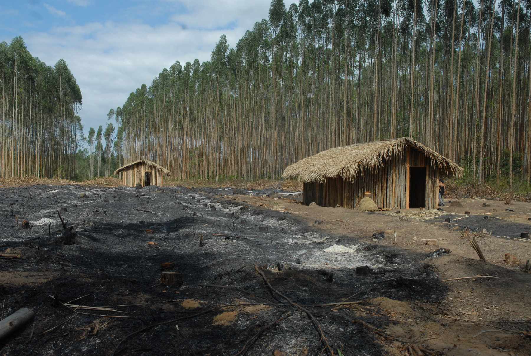 Today, eucalyptus plantations are ubiquitous in the region. In many places, the monocultures begin only a few feet from houses.